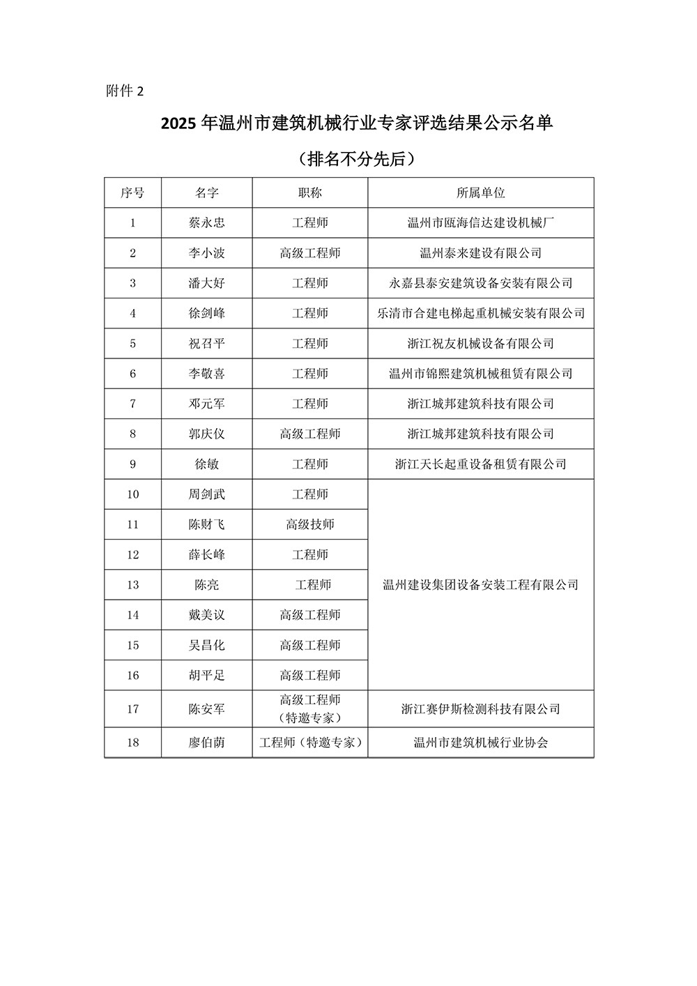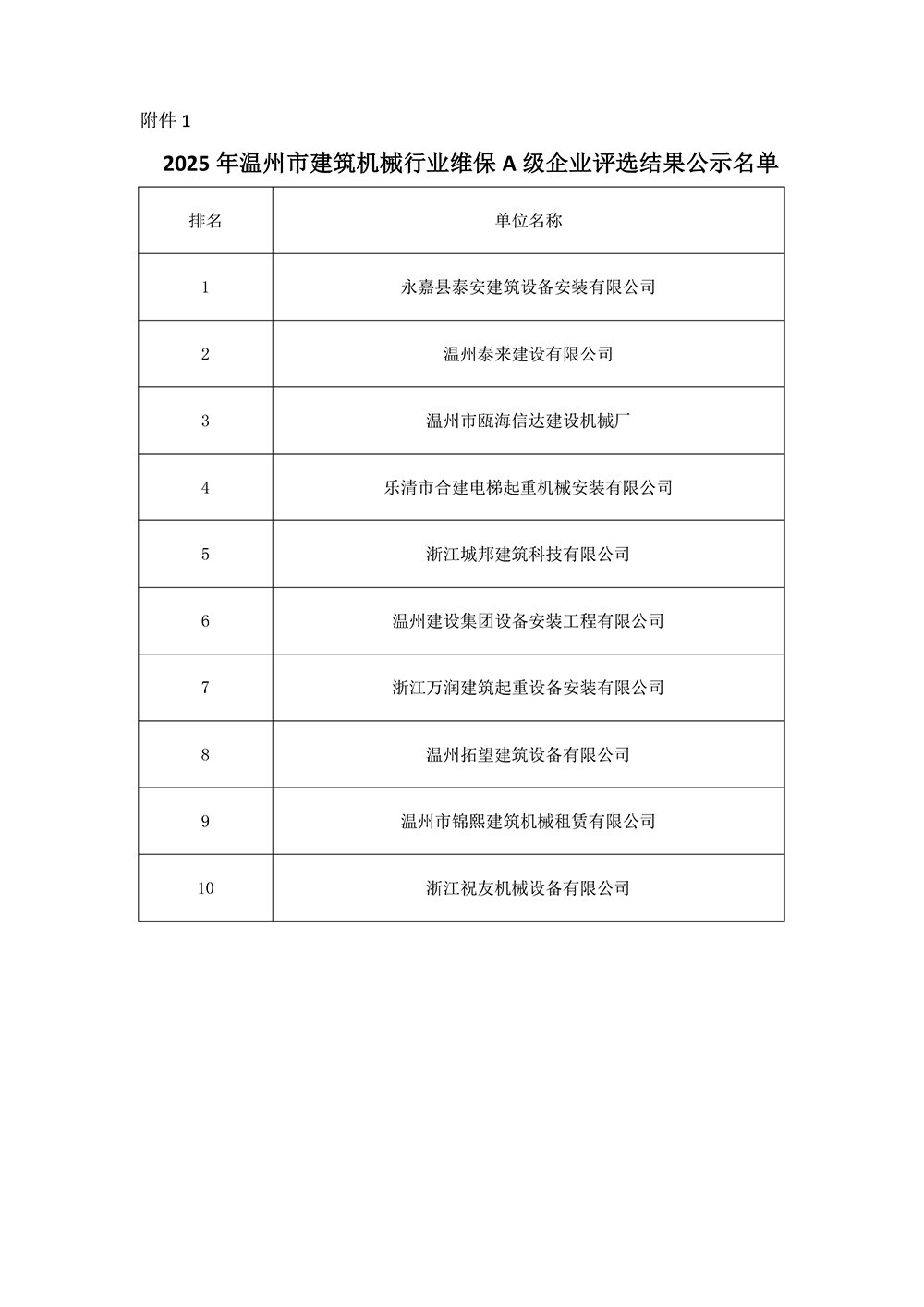 2025年温州市建筑机械行业维保A级单位及专家评选结果公示.pdf